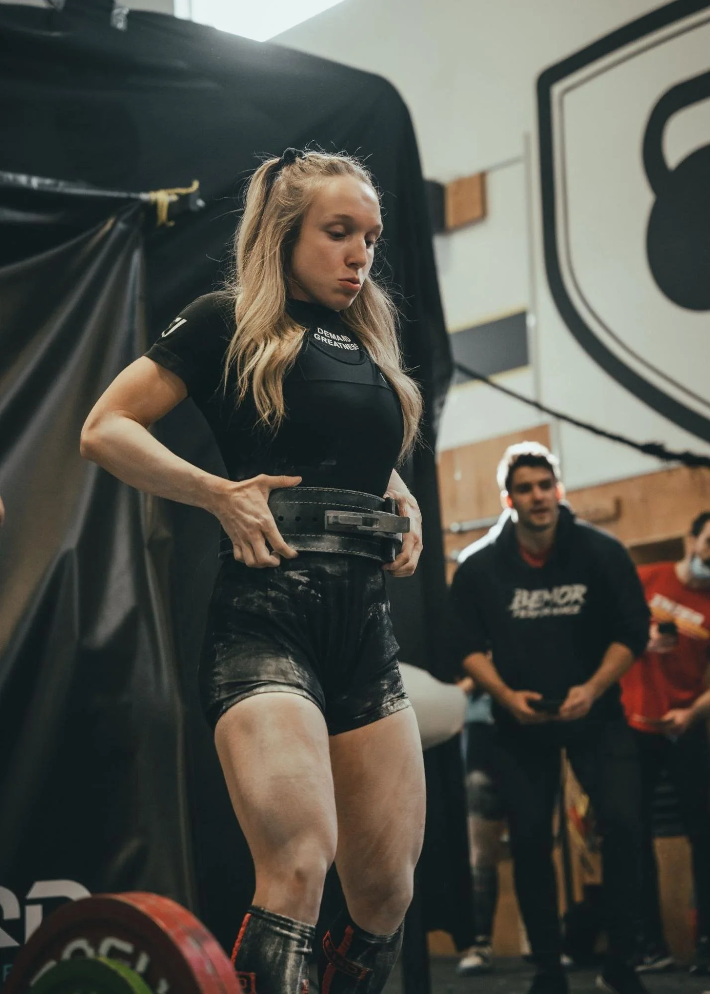 En septembre 2018, j’ai débuté mon BAC en kinésiologie et c’est à ce moment que j’ai rencontré mon copain actuel, qui faisait du powerlifting. C’est là que j’ai réalisé que depuis toutes ces années, je m’entraînais un peu à la “méthode powerlifting” sans même connaître le sport. À ce moment, je cherchais un nouveau but à mes entraînements, un objectif concret. En mai 2019, j’ai donc décidé d’engager un coach de powerlifting afin de faire ma première compétition 3 mois plus tard. Je me souviens m’être fait peser lors d’un cours universitaire et d’avoir vu 53 kg (ce qui donne environ 115 lbs) sur la balance. Laisse-moi te dire que ce n’est plus du tout le cas aujourd’hui!