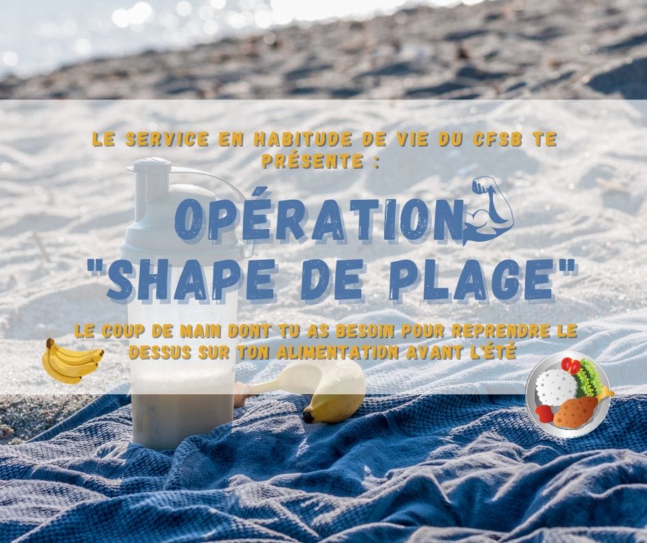 Le service en habitude de vie du CFSB te propose l’opération “Shape de plage”. Il s’adresse à toi, qui manges bien en générale, mais qui trouve ça un peu plus difficile ces temps-ci. À toi, qui a l’impression d’avoir perdu le focus sur tes bonnes habitudes alimentaires. Tu l’attendais et le voici: le signe du ciel qui te poussera à reprendre le dessus. Je te propose une nouvelle formule rafraîchissante et légère (un peu comme l’été????) qui t’offrira le coup de main dont tu as besoin. Viens bénéficier de mon expertise de celles des autres participants en te joignant à nous!